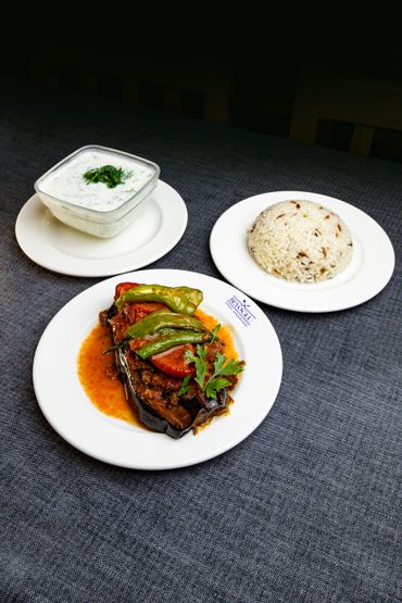 Pilav etrafında günün Et, Köfte yemeklerinden ve Döner eşliğinde karışık tabak